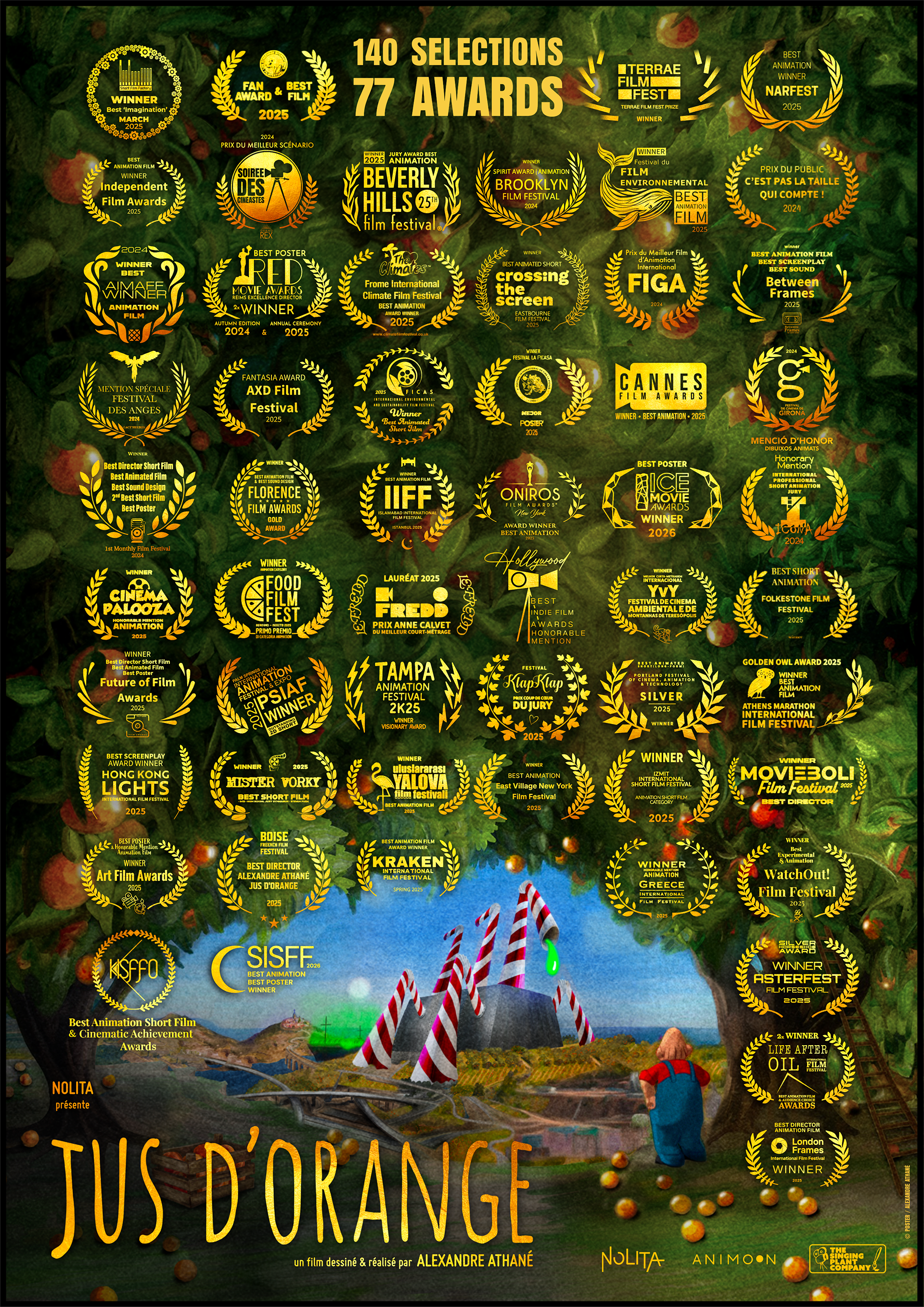 JUS D’ORANGE has been selected in over 140 festivals, and honored with 77 international awards