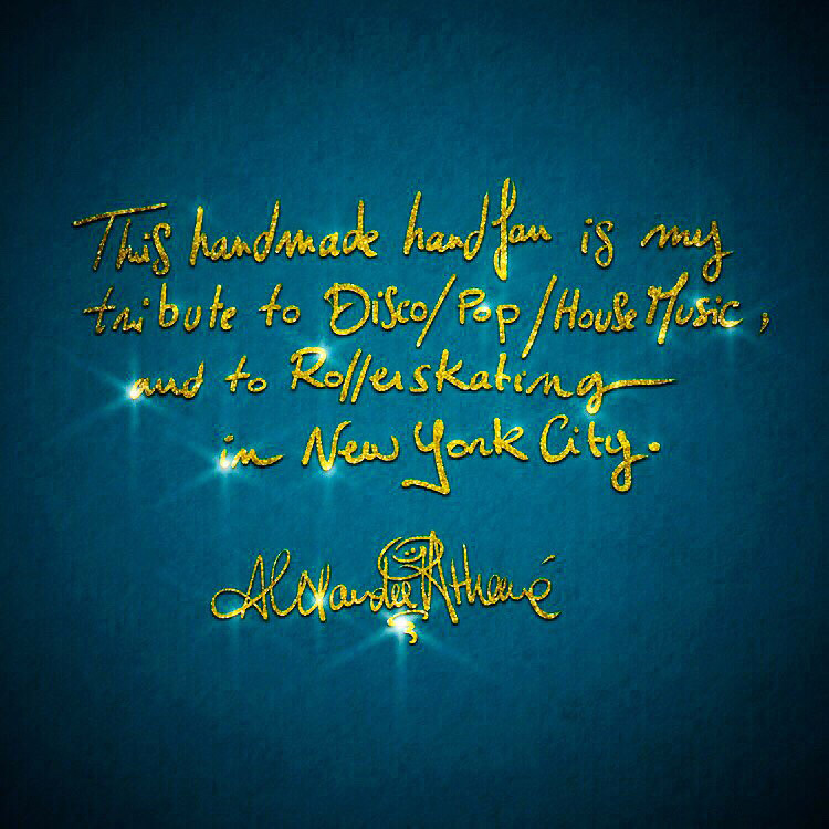 "This handmade hand fan is my tribute to Disco/Pop/House Music, and to Rollerskating in New York City " Alexandre